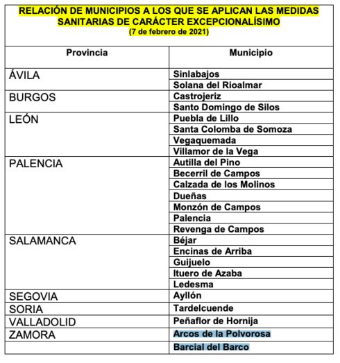 Hasta el 23 de febrero, al menos, estás localidades tendrán las medidas ya anunciadas, manteniéndose, entre las de más población: Palencia, Béjar y Guijuelo