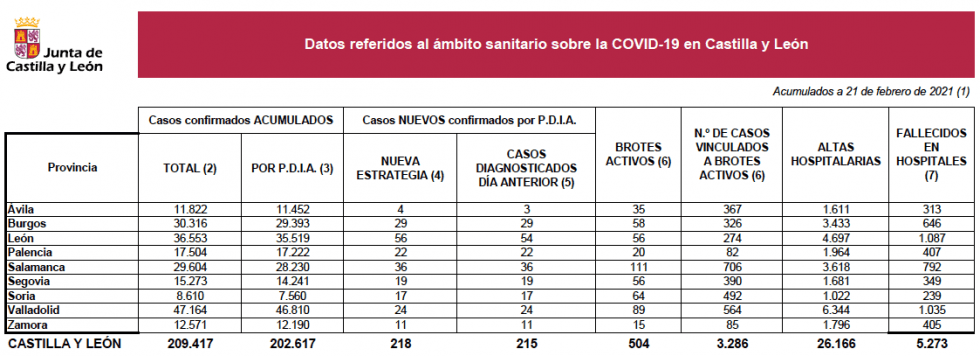 La Consejería de Sanidad de Castilla y León ha informado hoy de los últimos datos de la pandemia en la comunidad, con un número de positivos menor y la continuación de una fuerte bajada en la curva de incidencia. Así, hoy se confirman 218 nuevos casos de contagios por SARS-CoV-2 (ayer fueron 369), prácticamente todos diagnosticados ayer: 215. Recordamos que el sábado pasado se comunicaron 351 positivos?.