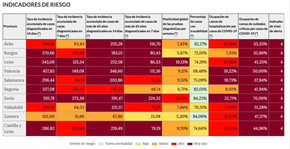 Según estos nuevos datos de hoy, las provincias con más casos nuevos son León, con 56 casos, y Salamanca, con 36. Los mejores datos los tenemos en Ávila, con cuatro, y en Zamora, con 11 positivos por SARS-CoV-2 en nuestra provincia, manteniendo la tendencia hacia la llamada nueva normalidad, tras los ocho de ayer (hace siete días se informó de ocho positivos nuevos también).