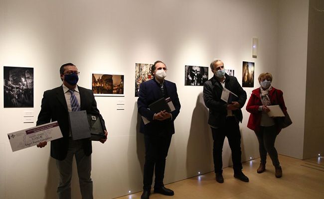 Ángel Pérez González, con la fotografía titulada “Misericordia en la noche”, que representa al Cristo de la Buena Muerte, titular de la hermandad del mismo nombre, durante la procesión del Lunes Santo,, recibió esta noche el primer premio del XXXVI concurso Nacional de Fotografía “Semana Santa en Zamora”, al que asistieron Isabel García Prieto, presidenta de la Junta de Cofradías; María Eugenia Cabezas, concejala de Cultura del Ayuntamiento de Zamora; Jesús María Prada Saavedra, vicepresidente 2º y diputado de Cultura de la institución provincial; Ángel Blanco, subdelegado del Gobierno en la provincia, y Feliciano Ferrero, secretario general de la Fundación Científica Caja Rural de Zamora.