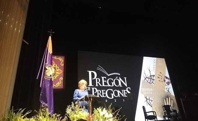 Pregón sin gente, solo con presencia del obispo y de las principales autoridades locales y provinciales, más la presidenta de la Junta Pro Semana Santa y directivos de hermandades y cofradías