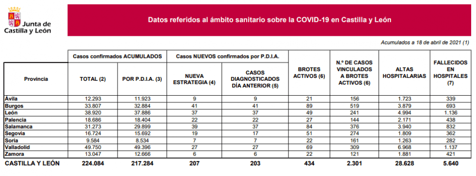 Los positivos detectados en Castilla y León son los mismos que los comunicados el domingo pasado: 207.