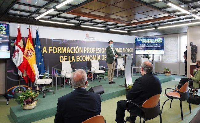 El presidente de la Junta de Castilla y León, Alfonso Fernández Mañueco, ha situado a la Formación Profesional como clave para la recuperación económica de la Comunidad del impacto provocado por la crisis de la pandemia del COVID-19. Así lo ha señalado la inauguración de la jornada ‘La Formación Profesional como motor de la economía de Castilla y León’ celebrada hoy en Zamora, donde ha destacado que estas titulaciones permitirán a los jóvenes incorporarse a empresas próximas a su lugar de residencia. Ayudando, así, a retener el talento y a fijar población, además de aportar el personal cualificado que la economía de Castilla y León necesita.