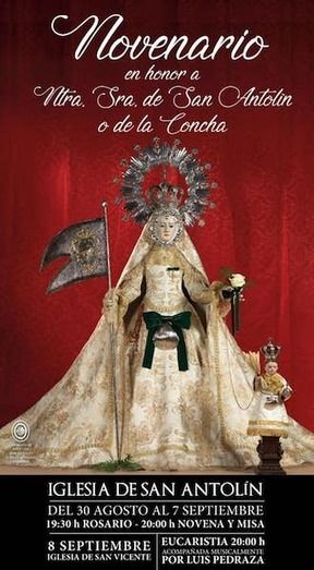 La Cofradía de Nuestra Señora de San Antolín o de la Concha ha organizado, durante la última semana, un novenario en la iglesia de San Antolín, que culmina hoy, en San Vicente, con una eucaristía con aforo limitado y todas las medidas higiénicas pertinentes.
