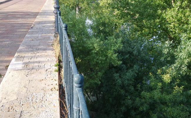Cuenta se dieron del impacto visual negativo, amén de otros daños, que producían los troncos obstruyendo el paso sobre los arcos del puente medieval. En la margen izquierda, el problema es mayor, porque no son troncos secos, sino vivos, los que están devorando, con sus raíces la cimentación tanto a uno como a otro lado, siendo tan evidente que incluso llegan a asomarse impunemente al tablero superior donde ya engullen las aceras, y seguirán ocupando arbitrariamente su espacio. De no atajare, y no parece que preocupe ni lo más mínimo, progresivamente los arboles seguirán con su crecimiento, las consecuencias, no tardando las comprobaremos.