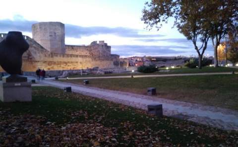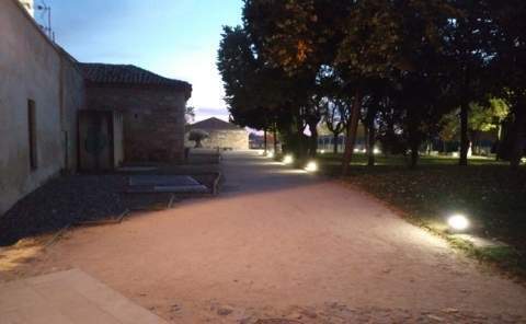 Los visitantes se perdieron el efecto de ver el histórico monumento desde el interior con luz artificial, quedaba la opción de hacerlo por los jardines del castillo, que hoy llevan otro nombre. Tres soportes, con el mismo número de lámparas LED, iluminan desde lo alto, cosa que no se logra convenientemente cuando los árboles tienen en sus ramas todas las hojas, la zona verde de lado sur, mientras que en el lado norte es un solo poste metálico elevado, con cámaras incluidas el que tiene esa misión.