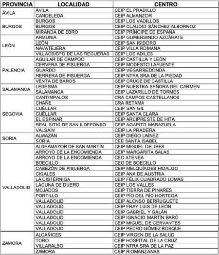 En esta edición, que cuenta con una dotación total de 180.000 euros, se han seleccionado 45 centros de la Comunidad que imparten segundo ciclo de Educación Infantil, Primaria y/o Educación Especial. En concreto, dos colegios en Ávila; tres de Burgos; cuatro en León; cinco de Palencia, dos en Salamanca; siete de Segovia; dos en Soria; 16 de Valladolid; y, finalmente, cuatro en Zamora.