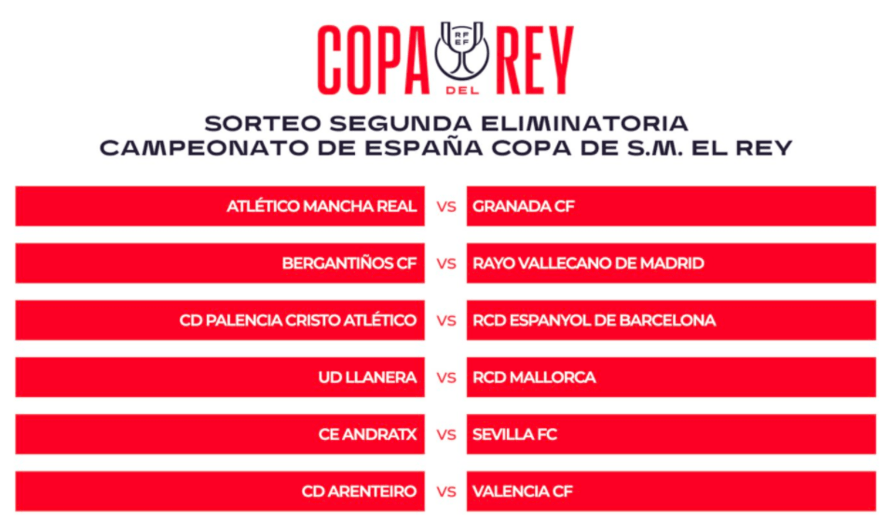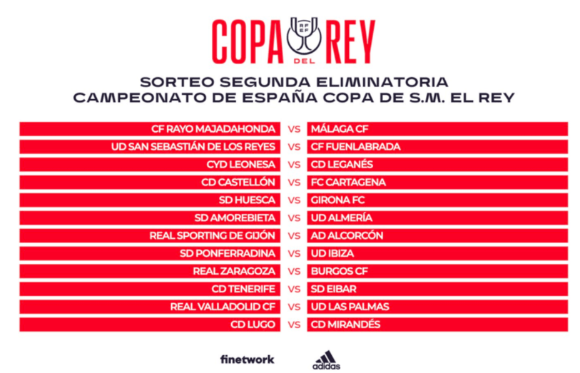 Desde las 12:00 h., sorteo de los 28 enfrentamientos de la Segunda Eliminatoria de Copa del Rey
