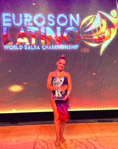 Pasadas las cuatro de la mañana, la zamorana María Garrido compitió en el Campeonato del Mundo de Salsa Euroson Latino 2021, que se ha celebrado en Cancún, demostrando, una vez más, su técnica y su clase, en la categoría de Solista, confirmando lo merecido de su reciente victoria en el Campeonato de España de Salsa.