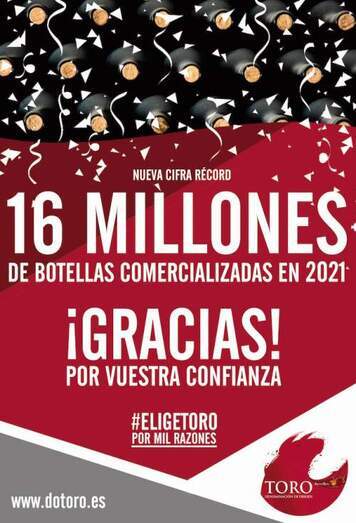 Las cifras de ventas del año 2021 en la DO Toro consiguen batir récords un año más, ya que nos sitúan por encima de los 16 millones de botellas comercializadas, superando los datos de ventas del año 2020 y logrando aumentar las ventas del año pasado en todos los segmentos de vino.