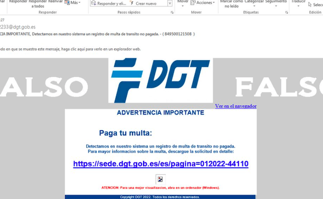 Se ha detectado un nuevo envío masivo por correo electrónico de multas falsas de la DGT