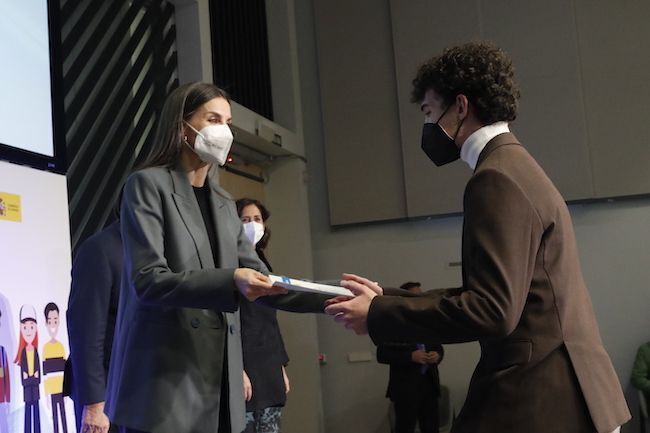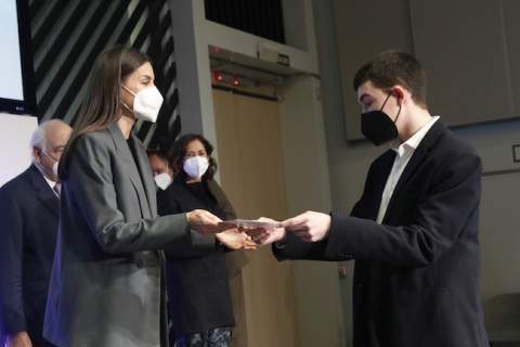 Elena, Mario y Luis recibieron de manos de la reina el premio por un proyecto, en forma de "podcast", sobre una noticia falsa