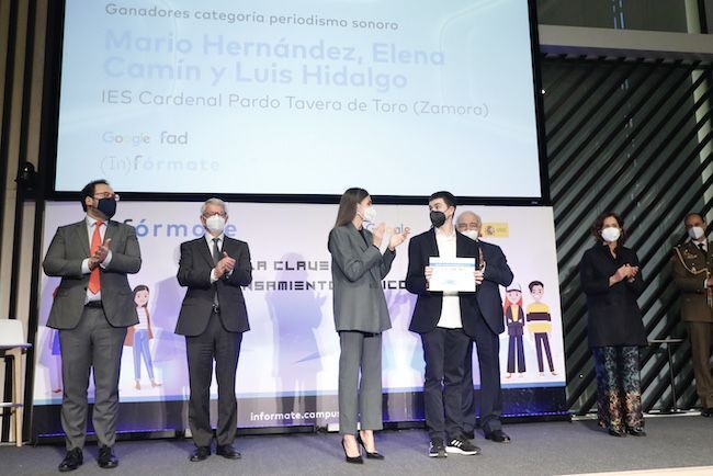 El galardón se les concede tras haber obtenido el primer puesto en el concurso 'Info_Influencers' en la categoría de 'Periodismo sonoro' el pasado curso. Los tres alumnos crearon un "podcast", que giraba en torno a una noticia falsa sobre la purificación del agua residual de Toro, contrastando, con este proyecto, su veracidad.