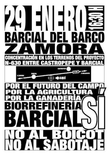 Por este motivo hacemos un recordatorio y llamamiento a los partidos políticos, agentes económicos y sociales, plataformas y ciudadanía a acudir a la manifestación de apoyo al proyecto y condena a la corrupción del PP de Castilla y León que tendrá lugar el próximo sábado, día 29 de enero, a las 16:30 h en Barcial del Barco (Zamora), en los terrenos donde se había iniciado la obra parada por presunta corrupción y mafia del PP.