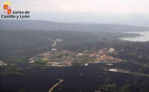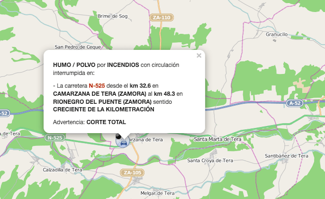 Corte de la Nacional 525, afectada por el humo del incendio de la Sierra de la Culebra