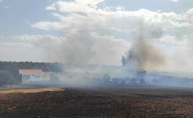 Durante el día, los Bomberos de Valladolid, según relata, trataron de controlar los frentes en las tierras de trigo recién cosechado, "pero el viento, fuerte y racheado, nos reactiva el fuego y hace que salte de un lugar a otro, produciendo focos que se saltan los cortafuegos recién hechos por las bulldozer".