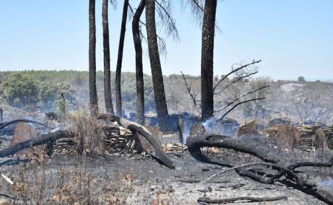 • Lo primero que debemos hacer es detener el vehículo, preferiblemente en un lugar seguro y apartado de la carretera. Debemos alejarnos de la vegetación y hacerlo de forma rápida, pues puede originar incendios tan graves como el de Navalacruz de Ávila o el de ayer en Rionegro del Puente, en Zamora, que se frenó por la rápida intervención de los bomberos.