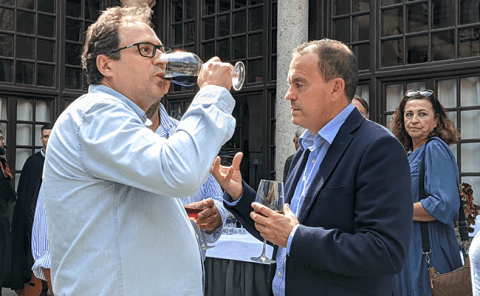 La cata comenzó con un tartar de tomate de la huerta de “Majia”, sobre un fondo de jalea de “El Regalo de Atenea”, con lluvia de queso rulo de “Hircus”, aliñado con aceite “DourOliva” y coronado por perlas de aceite “DourOliva” y que fue maridado con un vermut blanco “Bendita Locura”.