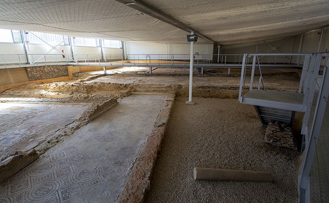A la vista de las conclusiones iniciales de los diagnósticos contratados se constata que, desde el punto de vista del análisis del subsuelo se ha detectado que la villa está construida sobre un nivel de arcillas poco permeables que genera un acuífero colgado, que coincide con el nivel más bajo del yacimiento y que debido a la pendiente natural del terreno provoca que el agua fluya hacia el yacimiento de forma constante por lo que se puede empapar la superficie musiva en periodos de fuerte presencia de agua. Por otro lado, la propia construcción de la envolvente y la urbanización de la zona pueden interrumpir este fluido natural del agua, reteniéndola en las zonas más bajas del yacimiento.