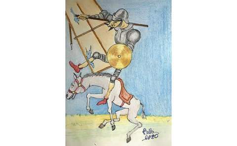 De nada sirvió al pobre Sancho tratar de convencer a su amo de que aquello no eran gigantes, sino molinos de viento y que lo que en ellos parecían brazos eran las aspas que, volteadas por el viento, hacían andar las piedras del molino.