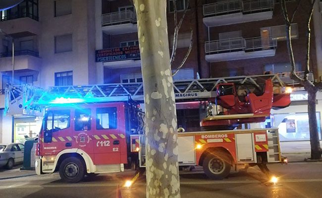 Incendio en una entreplanta de la avenida de las Tres Cruces, junto a Vitaldent, que ha provocado una gran humareda, al que acudieron dos camiones de los Bomberos de Zamora y Policía Municipal, que ha cortado un sentido de una de las vías en la céntrica calle zamorana.