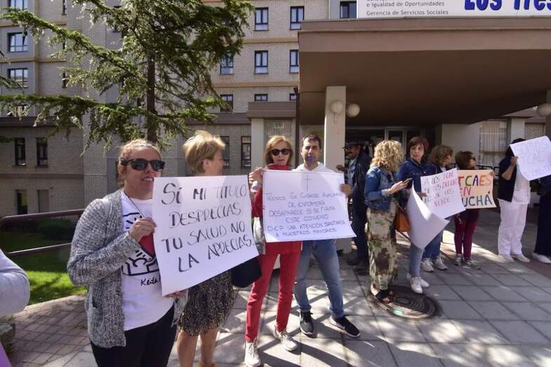 Los técnicos de enfermería zamoranos se han concentrado en las puertas de la residencia "Tres Árboles", como prometen hacer cada jueves en diferentes lugares de Zamora, para hacer pública su protesta contra la decisión de la Consejería de Sanidad de la Junta de Castilla y León, firmada por algunos sindicantos, para rebajar su categoría profesional, en una "clara demostración de agradecimiento" por el trabajo que realizaron durante la pandemia.