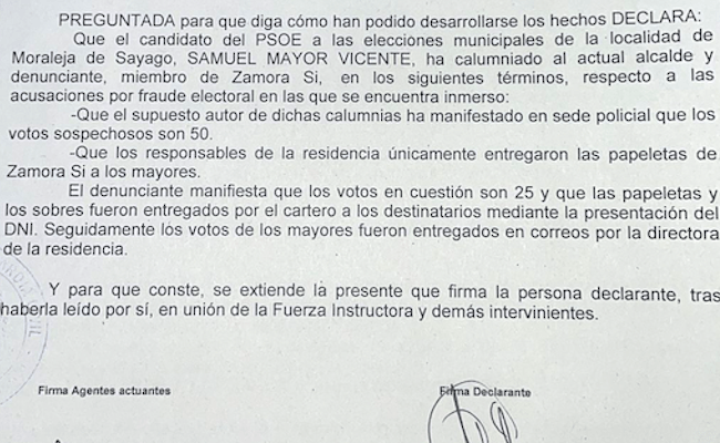 El candidato de Zamora Sí a la Alcaldía de Moraleja de Sayago, Ángel Villamor Turrión, ha interpuesto una denuncia por calumnias, ante las acusaciones vertidas sobre su persona por el candidato del PSOE.