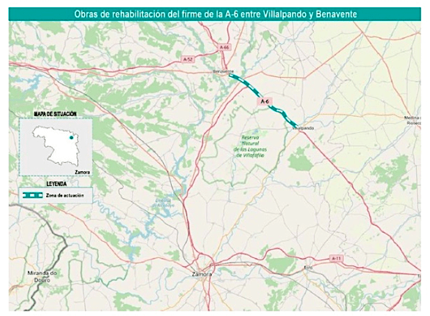 Esta rehabilitación del firme se desarrollará en los términos municipales de Villalpando, Cerecinos de Campos, Villalobos, San Esteban del Molar, Castrogonzalo y Benavente.