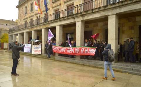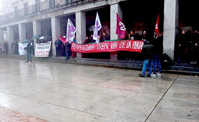 Con la concentración de esta mañana en la plaza de la Constitución, Zamora se ha unido al grupo de 14 ciudades del oeste peninsular que luchan y reclaman la reapertura de la línea del tren Ruta de la Plata, que lleva 40 años cerrada al tráfico de pasajeros y lo que es aún más importante, 30 años cerrada al transporte de mercancias, desde que se realizara el cierre definitivo, en 1996.