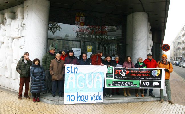 Hoy estamos aquí, delante de estas oficinas de la Junta de Castilla y León para volver a pedir que se impliquen decididamente en la protección de nuestras aguas. Necesitamos que se protejan las diversas masas de aguas, visibles e invisibles, de nuestra comunidad y provincia, porque la contaminación sigue creciendo y el nivel de los acuíferos, bajando. Es decir: cada vez hay menos agua y está más contaminada.