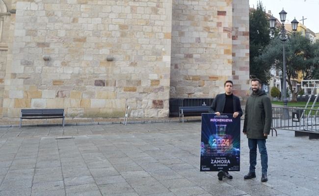 El concejal de Promoción Económica y Protección Ciudadana, David Gago, acompañado por el creador del evento, Miguel Álvarez, han presentado el espectáculo que deleitará a los zamoranos la noche anterior a fin de año, con el propósito de que "todos los zamoranos celebremos juntos el final de año, nos felicitemos, cojamos aire y alegría para encarar en año 2024".