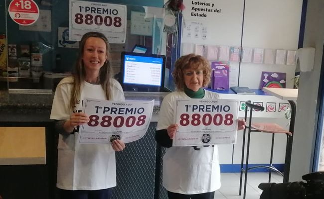 Mari Ángeles Rivera, dueña del establecimiento "El Azar", Y Begoña, hija de esta , fueron las encargfadas de repartir la suerte