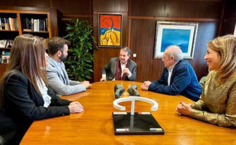 Laura Huertos, técnico de comunicación de Caja Rural, y David Gago, teniente alcalde del Ayuntamiento de Zamora, han acompañado al director de la Banda de Música de la Real Cofradía de Nuestra Madre de las Angustias, Víctor Argüello, a la presidenta de la Cofradía de Nuestra Madre de las Angustias, Isabel García Prieto, al secretario de la cofradía, Luis Fernando García Martín, y al artista invitado, Dani de Baza.