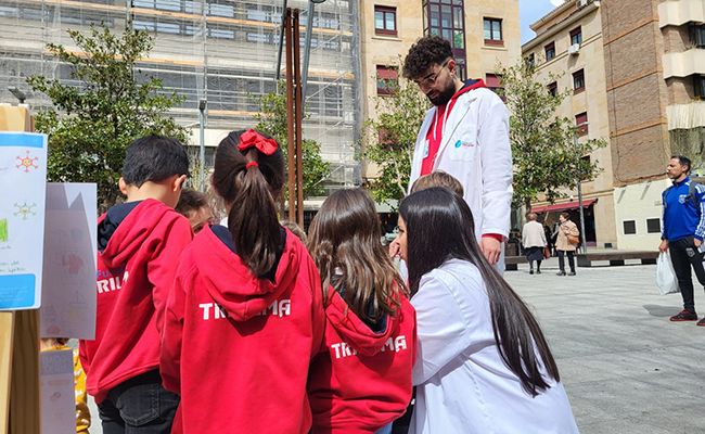 Además de padres, familiares y viandantes, tampoco han querido perderse esta particular exposición de ciencia un grupo de alumnos de Magisterio de Educación Infantil.
