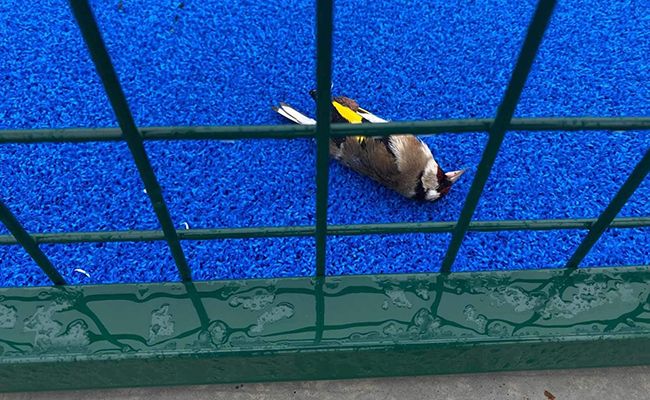 Gracias a la colaboración ciudadana, esta ONG ha sido informada de la grave problemática derivada de la constante mortalidad de aves que colisionan contra los cristales que rodean la pista de pádel instalada en Perilla de Castro.