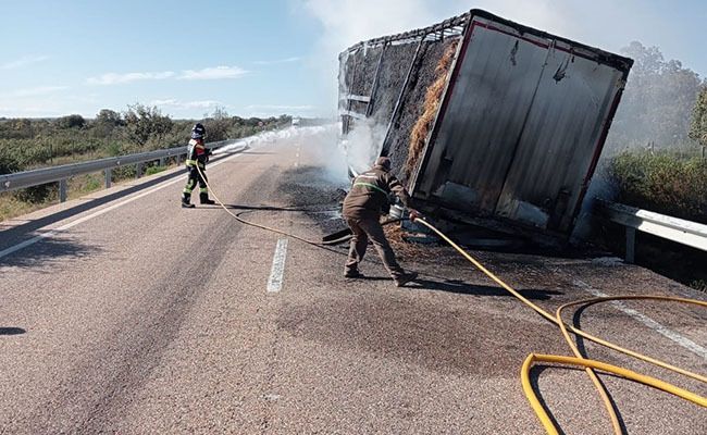 Efectivos del Parque de Bomberos de San Vitero del el Consorcio Provincial de Bomberos de la Diputación de Zamora intervino esta tarde en las labores de extinción del incendio causado por un camión de paja en el término municipal de Fonfría y que ocasionó, además, el corte al tráfico de la carretera N-122 en el kilómetro 497 en ambos sentidos de la circulación.