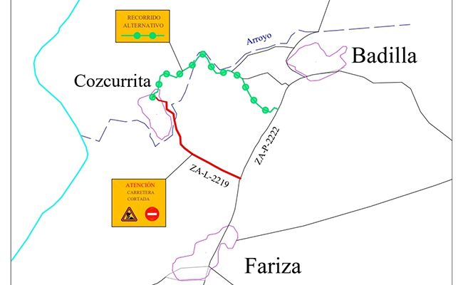 La Diputación Provincial de Zamora procederá al corte total de la carretera ZA-L-2219 en el tramo comprendido entre la ZA-P-2222 y la localidad de Cozcurrita debido a que se va a realizar el extendido de mezclas bituminosas en la carretera y este se realizará a ancho completo de calzada, lo que impide físicamente el paso de vehículos.