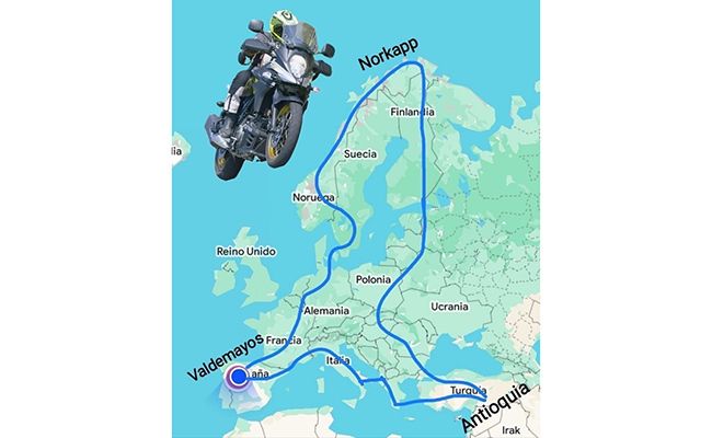 Ahora, dos años y medio después, lo vuelve a intentar. Su rumbo:  CABO NORTE en NORUEGA.  Los confines de EUROPA por el Norte le ayudarán y acompañarán hasta su helado destino. En este caso también, su única compañera será una moto Suzuki V-Strom. Sus lugares de paso, muchos de los cuales seguramente iremos conociendo desde aquí, se ubican en... las montañas del TOUR DE FRANCIA... ITALIA de norte a sur... ALBANIA... GRECIA... TURQUÍA, con parada especialmente emotiva para visitar la ciudad de Antioquía y sus habitantes damnificados por el terremoto de febrero del año pasado... hasta poder coger ya rumbo norte... bordeando UCRANIA (por razones obvias de seguridad)... pero cruzando el resto de países de CENTRO EUROPA... hasta llegar, y cruzar, FINLANDIA, afrontando las últimas etapas hasta su destino en CABO NORTE.