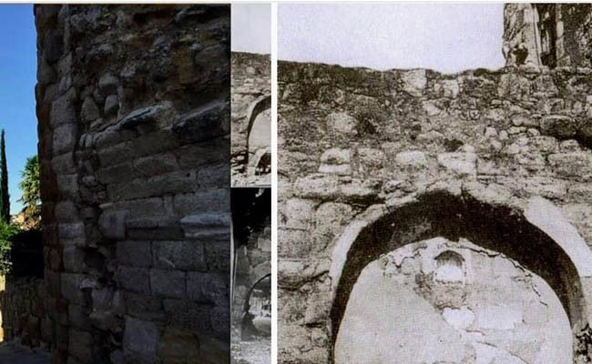 En fotografías de 1920, podemos ver como estaba tapiada parte de la puerta, quedando reducida su entrada.
