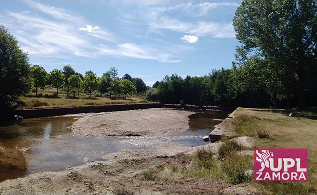 Después de iniciados meses atrás los trabajos para instalar una segunda compuerta en la presa artificial que retiene el agua, y que se acondicionó como zona de baño, los vecinos confiaron en que podían refrescarse este verano, apunta UPL. Craso error, porque la despreocupación por concluir los trabajos a tiempo, tanto de la corporación del PP que gobierna en el ayuntamiento como de la Diputación que no ha puesto el suficiente empeño en dar una solución a tiempo, han dado lugar a que este año los residentes y los no poco turistas que se acercaban en verano a la localidad, como a cualquiera de sus anejos no puedan darse un baño.