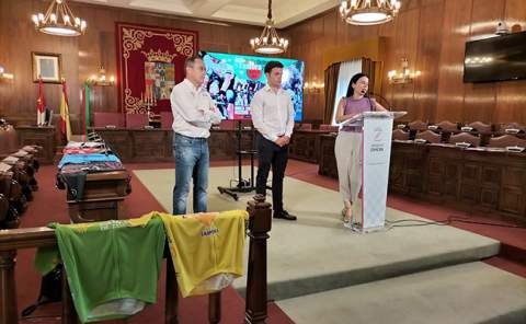 Fotografía:los tres capitanes, charlando con Juan Sabas, esta mañana, en la cafetería del Ruta de la Plata.