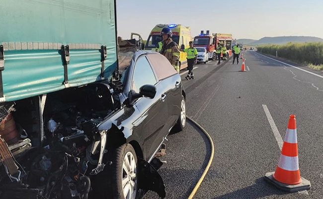 El accidente se ha producido por alcance del turismo que se ha incrustado en la parte trasera de camión.