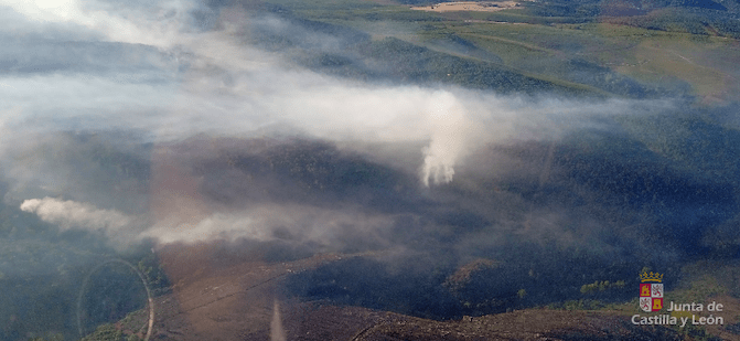 Actúan en la zona, con el incendio ya perimetrado: siete técnicos, 11 celadores y agentes medioambientales, 11 cuadrillas terrestres, seis autobombas, siete bulldozer y tres cuadrillas helitransportadas, más cuatro medios aéreos, además del apoyo de la Agencia de Protección Civil y Emergencias de Castilla y León, Guardia Civil, Cruz Roja y la UME.