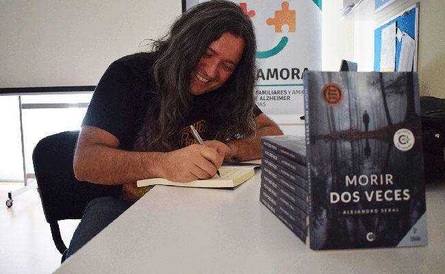 Alejandro Seral ha presentado su novela “Morir dos veces” en la sede de la Asociación de Familiares de Enfermos de Alzheimer (AFA) de Zamora. La jornada, marcada por la reflexión, comenzó con el visionado de un documental que abordaba de forma personal la experiencia del autor, cuyo padre sufrió la enfermedad durante más de 25 años; lo que permitió al público conocer de cerca la realidad que inspiró su obra.