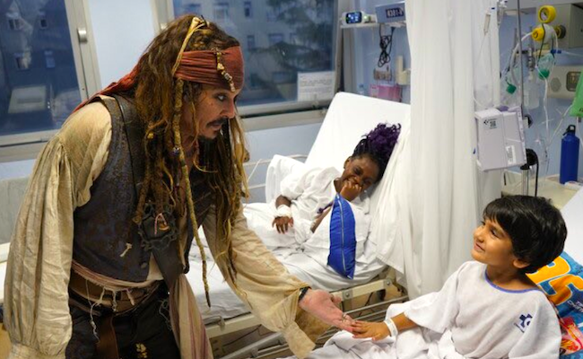 Johnny Depp vuelve a ser el capitán Jack Sparrow para visitar a los niños ingresados en el Hospital Universitario de Donostia