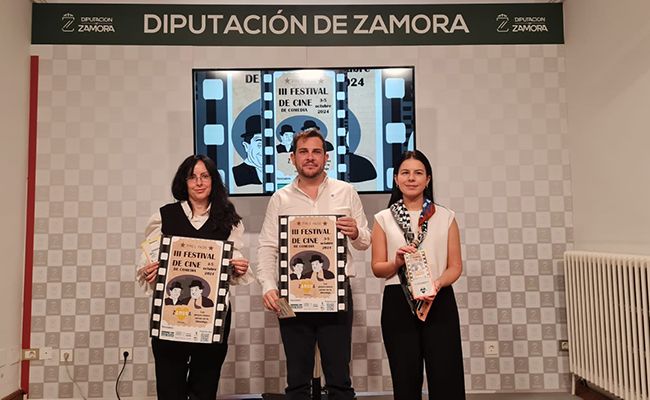 La directora del certamen, María Vega, ha estado acompañada en la presentación por el vicepresidente primero de la Diputación de Zamora y diputado de Educación, Cultura, y Turismo, Víctor López de la Parte, y la técnico de Comunicación de la Fundación Caja Rural, Laura Huertos.