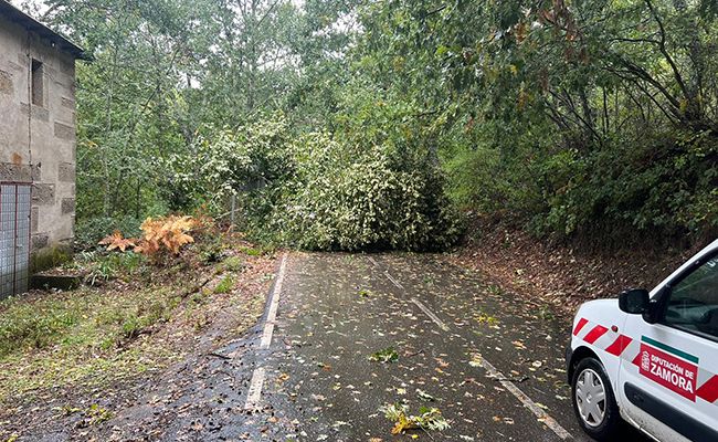 Trabajadores de la empresa de mantenimiento de la Diputación de Zamora ya se encuentran realizando labores de retirada de árboles caídos sobre la calzada en varias carreteras de la Red Provincial, tras recibir el aviso de la Guardia Civil