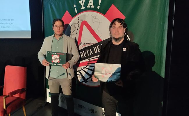 Los concejales del Ayuntamiento de Zamora, Pablo Novo y Diego Bernardo, han asistido a la jornada reivindicativa por la reapertura de la vía férrea de la Ruta de la Plata, que se ha celebrado hoy en Plasencia, recogiendo el testigo de Zamora, tras la concentración celebrada el pasado mes de mayo.