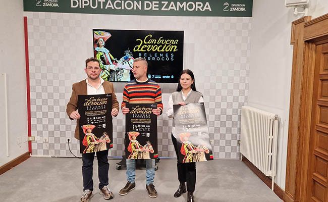 Esta mañana ha sido presentado el Belén Monumental de la Diputación Provincial de Zamora, "Con buena devoción. Belenes Barrocos", de la mano del vicepresidente primero y diputado de Educación, Cultura y Turismo, Víctor López de Parte, del presidente de la Agrupación Belenista La Morana, Francisco Iglesias Escudero, y de la técnico de Comunicación de Caja Rural, Laura Huertos.