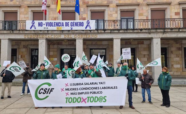 Esta mañana, a las 12:00 horas, ha tenido lugar una nueva concentración del sindicato CSIF a las puertas de la Subdelegación de Gobierno de Zamora para reclamar la mejora de las condiciones laborales y salariales de los empleados públicos y en defensa del mantenimiento de la asistencia sanitaria de MUFACE.